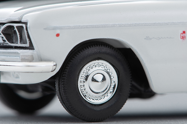 今回の製品は、日産と合併後の、通称III型と呼ばれるモデルを再現。黒基調のフロントグリルなど外観はもちろん、さらにボンネットを開閉式とし、高出力モデルGT-Bの証である3連キャブレターを装着した6気筒G7型を見ることができます。TLVでは初代〜10代目のR34型まで、20世紀のスカイラインが全て揃いますので、是非取り揃えください。
