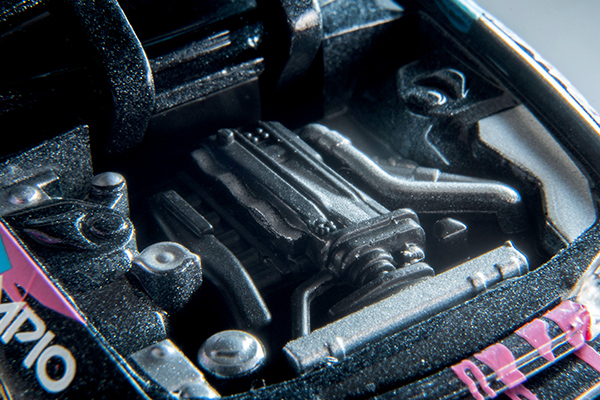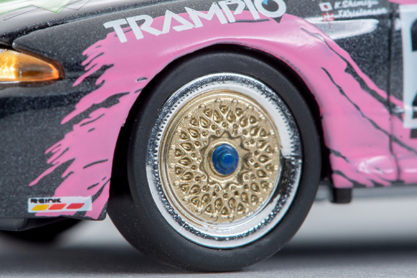 本製品はグループA仕様専用金型で、内装はもちろんエグゾーストやエアジャッキ、ホイール、ドアミラーなど市販車とは異なるディテールを再現。もちろん今回もボンネットは開閉可能、エンジン再現がされています。複雑な彩色が施されたカラーリングやメッシュのホイール形状などご注目ください。