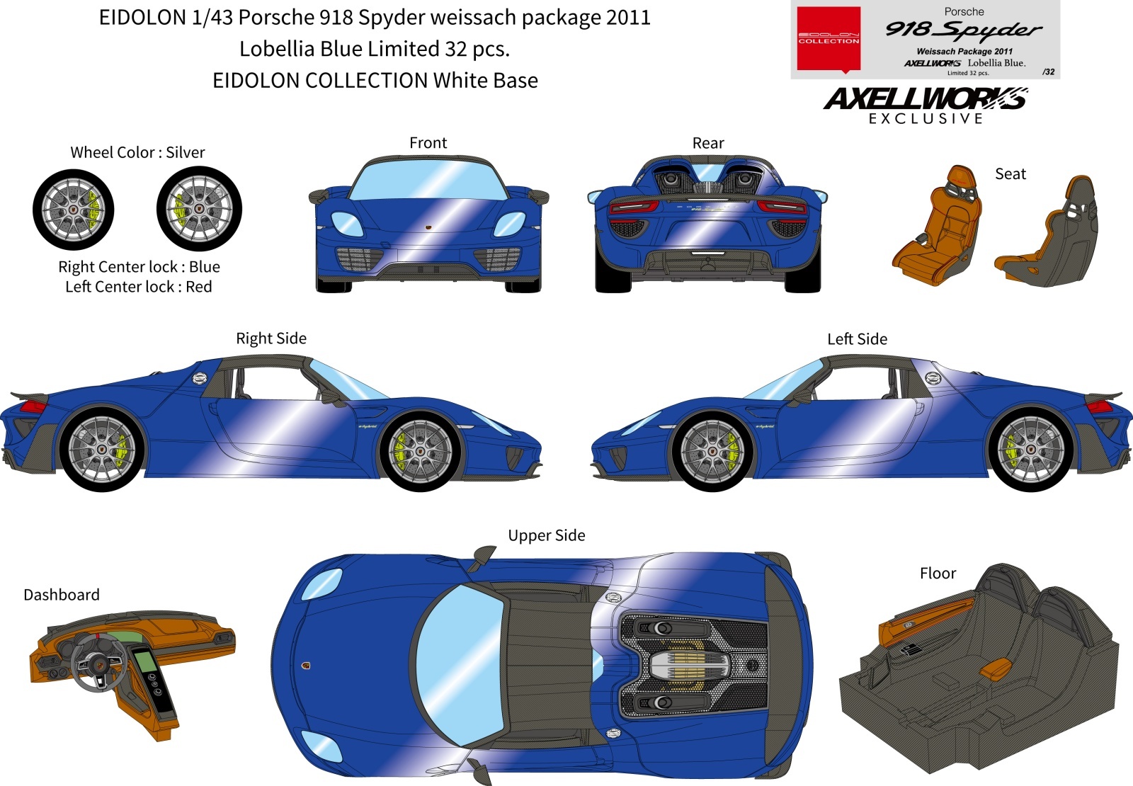 EIDOLON 1/43 Porsche 918 Spyder weissach package 2011 Lobellia Blue Limited 32 pcs.