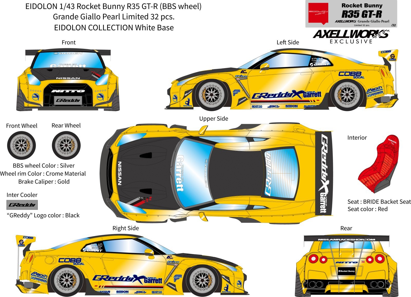 EIDOLON 1/43 Rocket Bunny R35 GT-R (BBS wheel) Grande Giallo Pearl Limited 32 pcs.