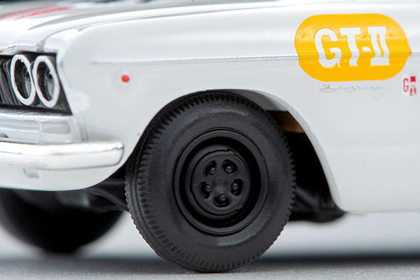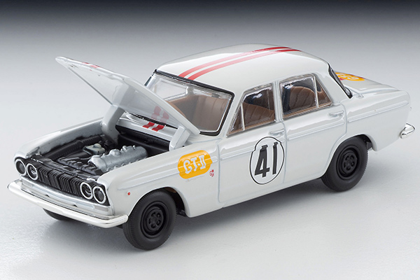 このS54型スカイラインGTを、TLVで製品化します。日本グランプリ仕様は通称I型と呼ばれる初期モデルのディテールを極力再現しました。実際のレースで最終的に2位に入ったゼッケン39番と、結果は3位ながらポルシェを抜き去ったことで伝説的な人気がある41番の2種を展開します。こちらもボンネットが開閉、エンジンを見ることができます。