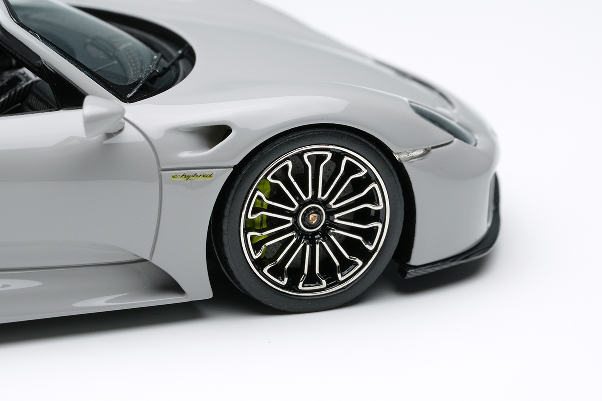 とここまで書いてきて、もっとも驚異的なことは、ポルシェ918スパイダーが、9月18日から918台限定生産されたのは、今から11年前の2013年のであった、ということに尽きるかもしれません。11年前の衝撃をフラッシュバックするために、今回は完全新設計のモデルとして1/43と1/18で918スパイダーをリリースいたします。