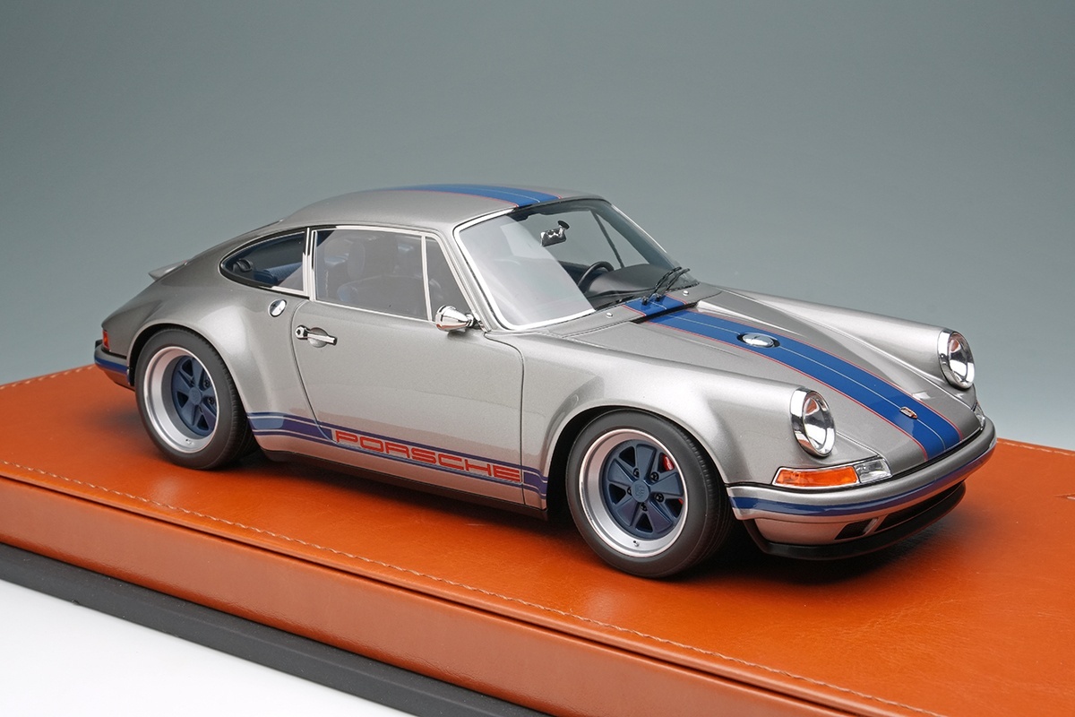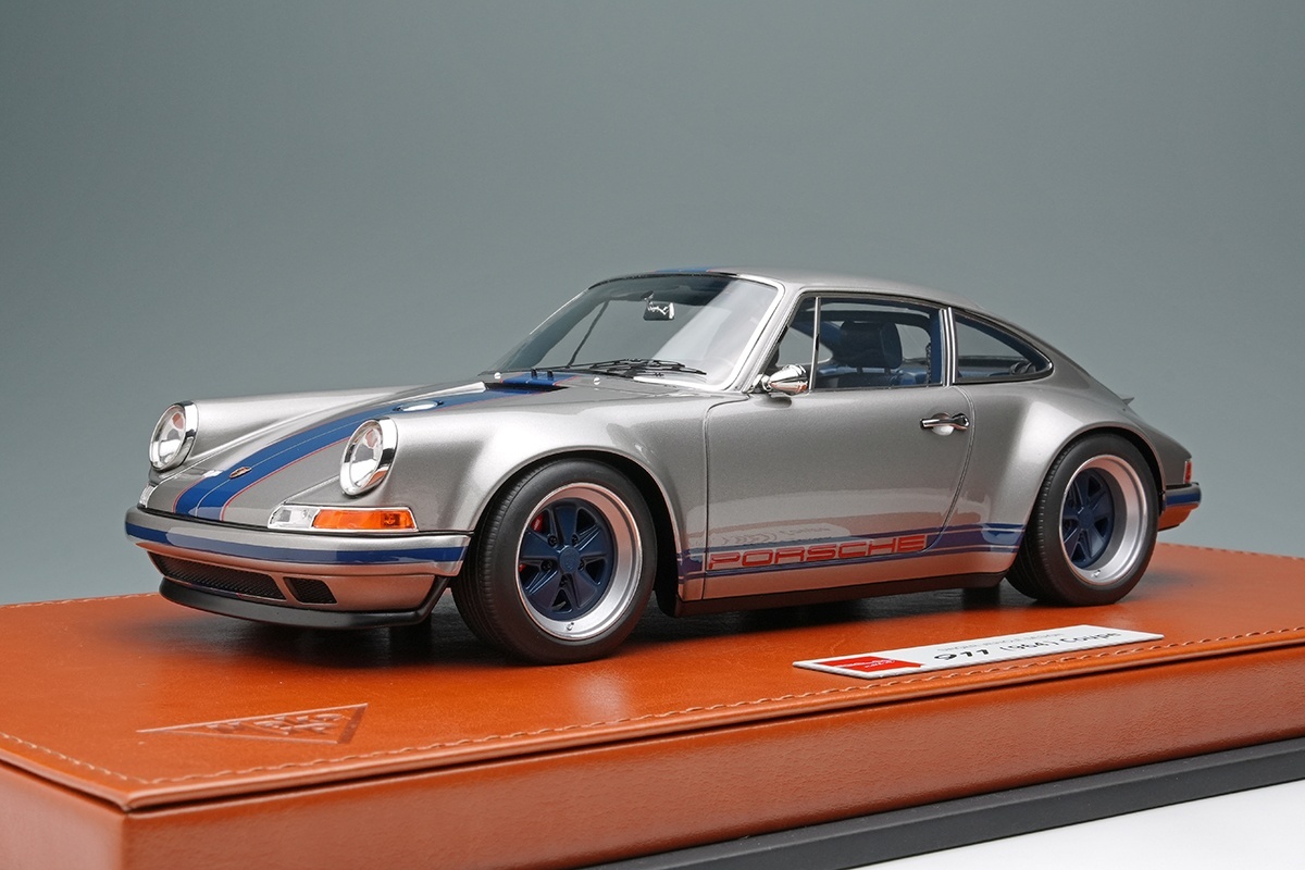 EIDOLON 1/18 Singer 911 (964) Coupe Titanium Silver / Navy Stripe Limited 100 pcs. [EML090F]