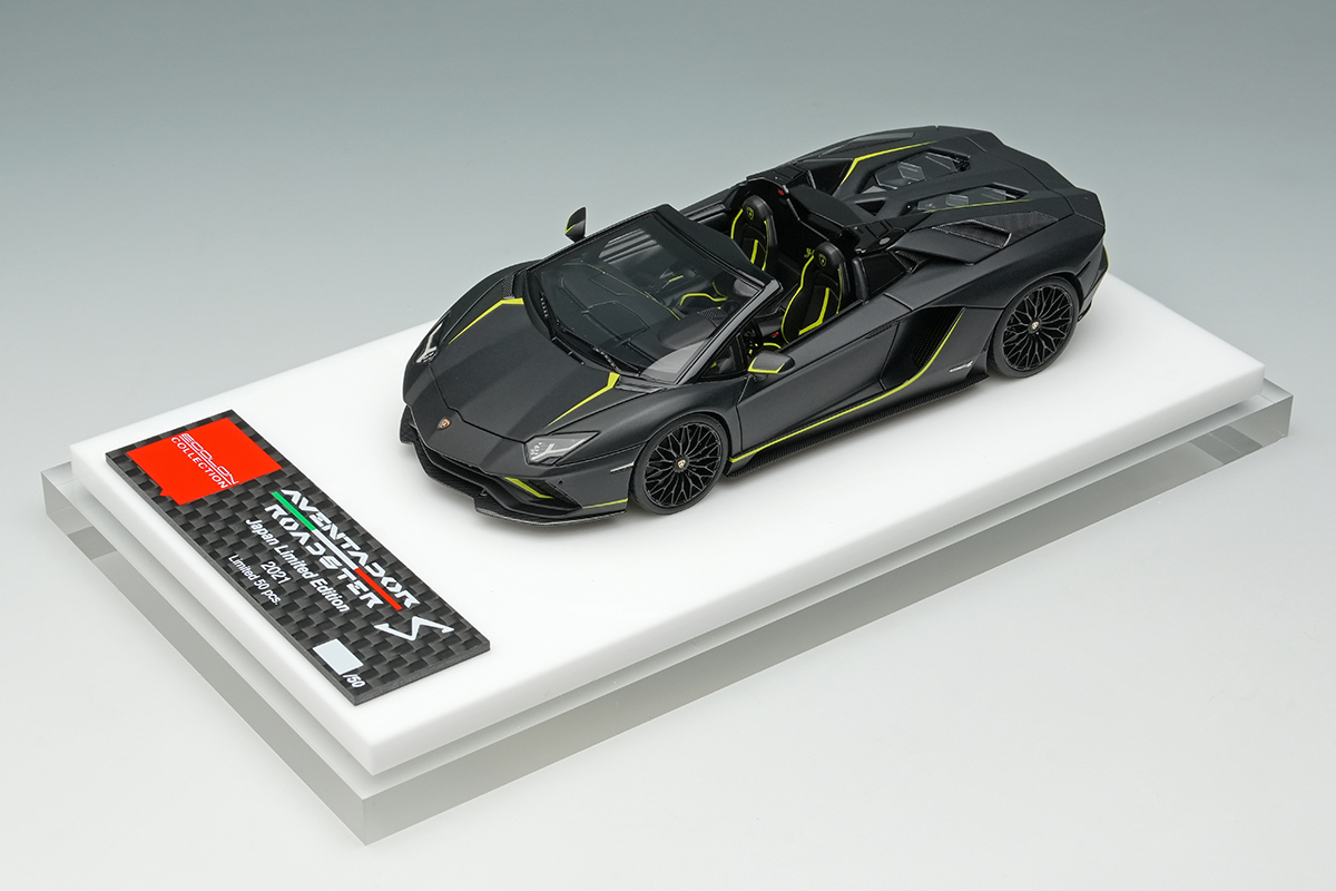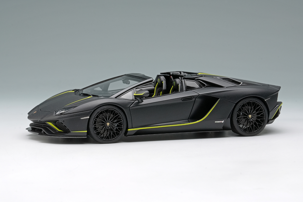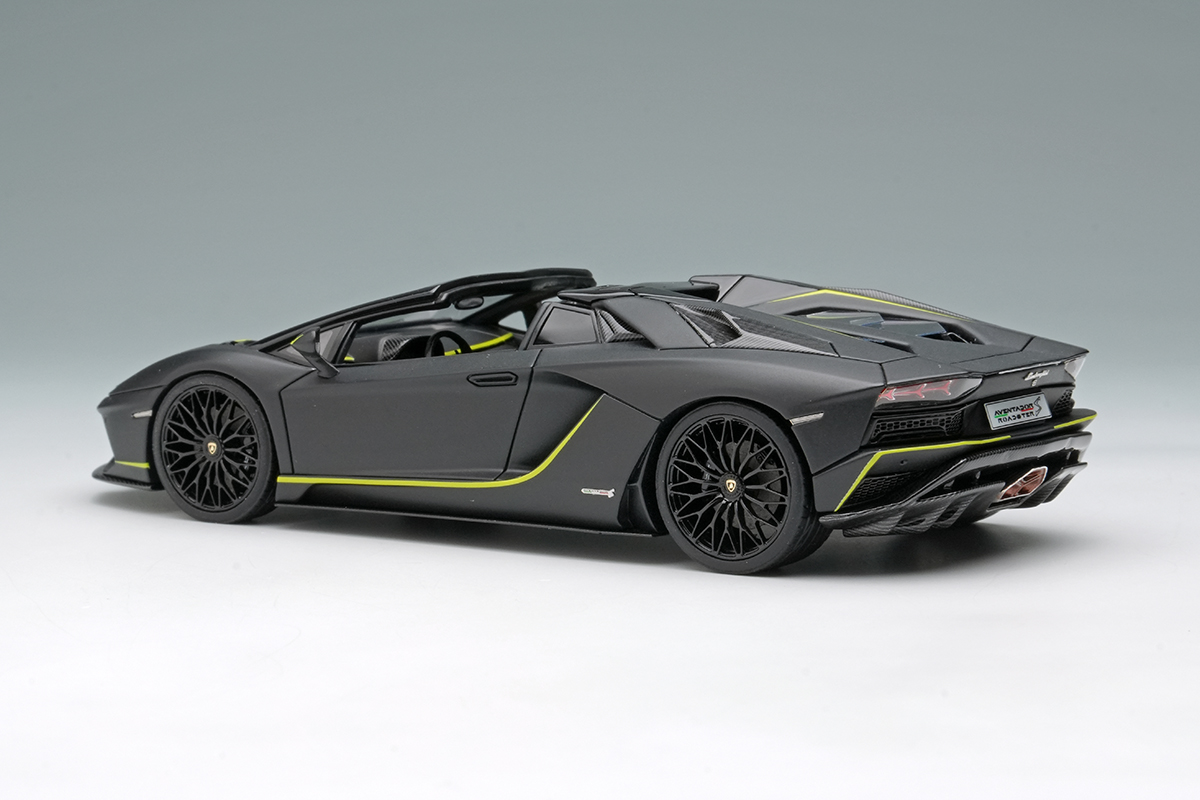 EIDOLON COLLECTION 1/43 Lamborghini Aventador S Roadster Japan Limited Edition 2021 Nero Pulso / Green Stripe Limited 50 pcs. [EM598A]