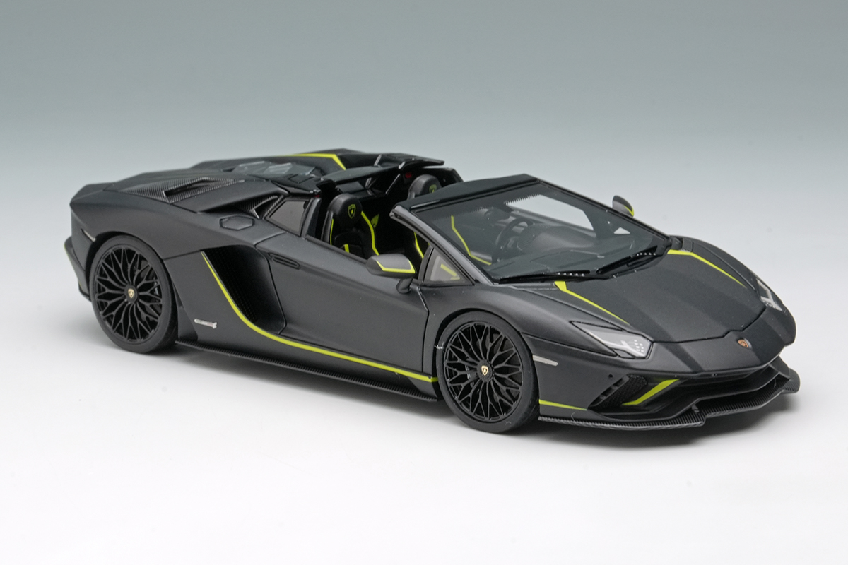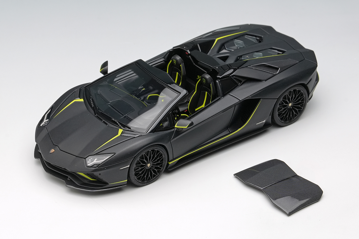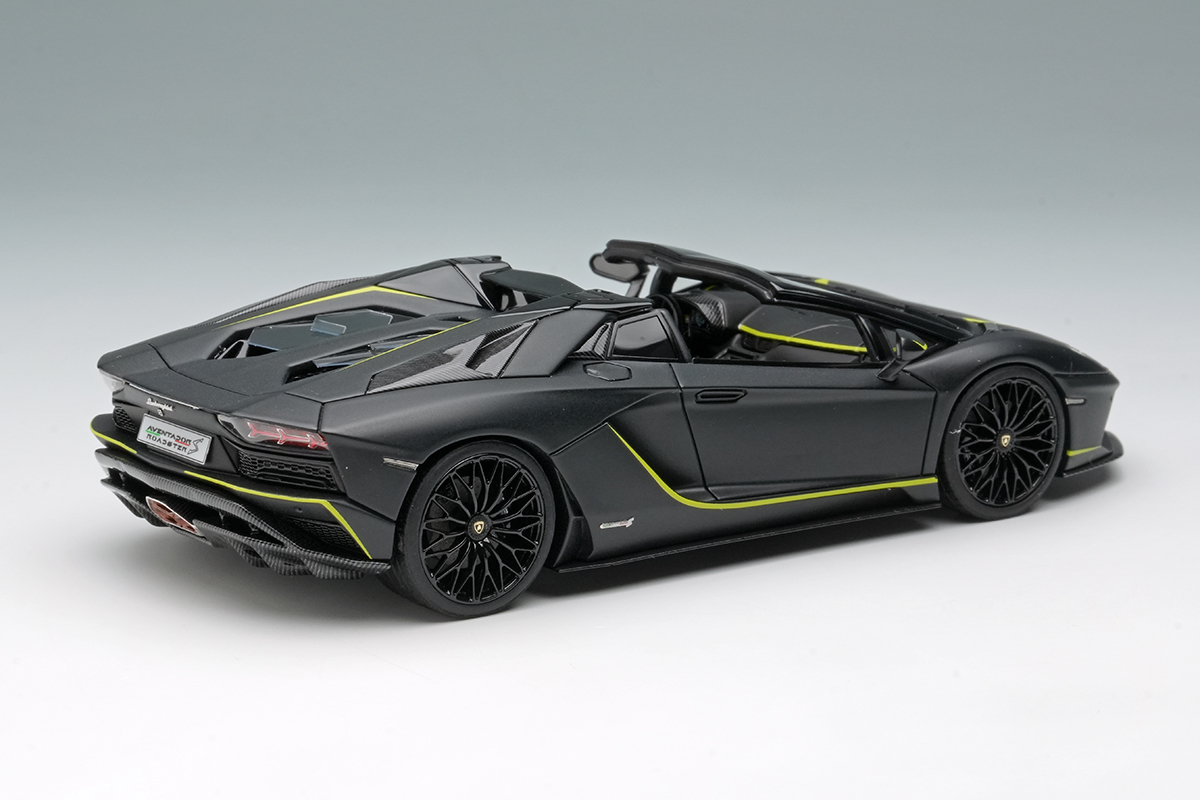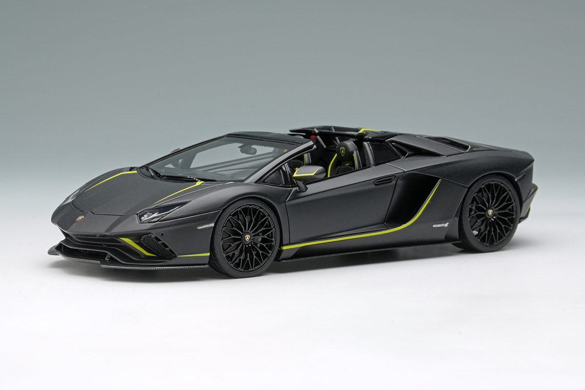 EIDOLON COLLECTION 1/43 Lamborghini Aventador S Roadster Japan Limited Edition 2021 Nero Pulso / Green Stripe Limited 50 pcs. [EM598A]