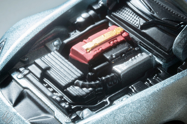 本製品はエンジンフードを開閉式とし、F22C型エンジンを再現。幌は開状態と閉状態のパーツをセットいたします。どちらも渋いカラーリングにご注目ください。