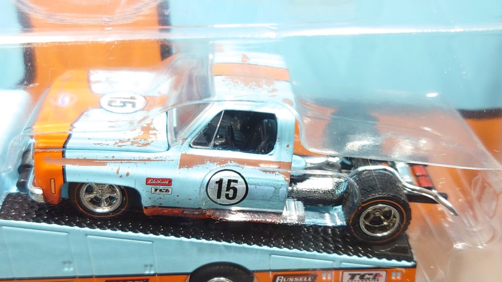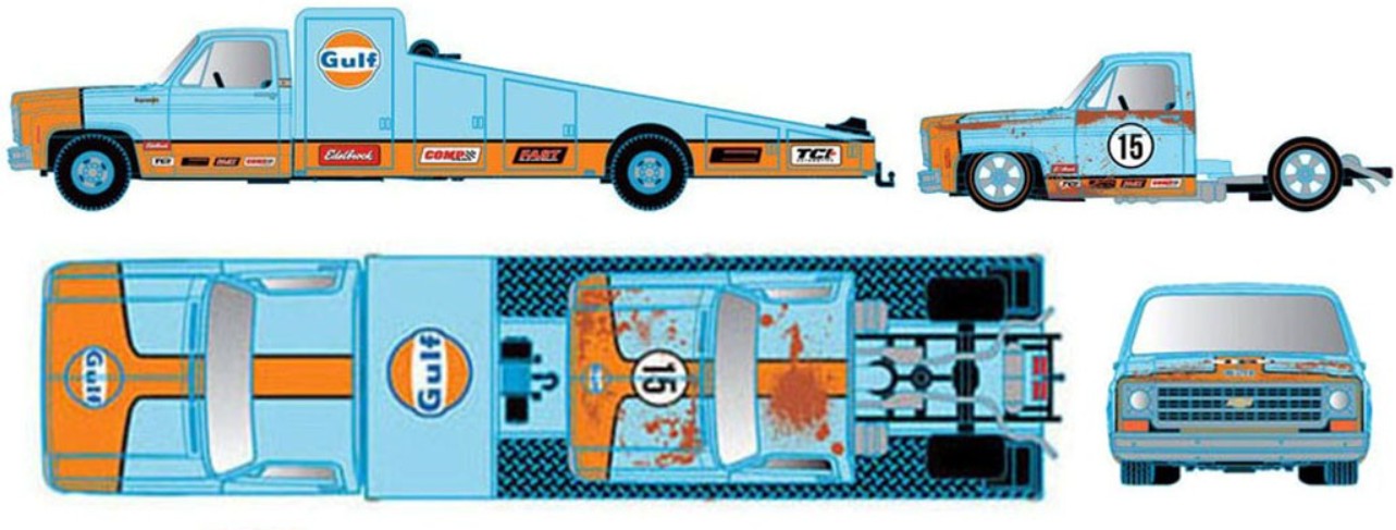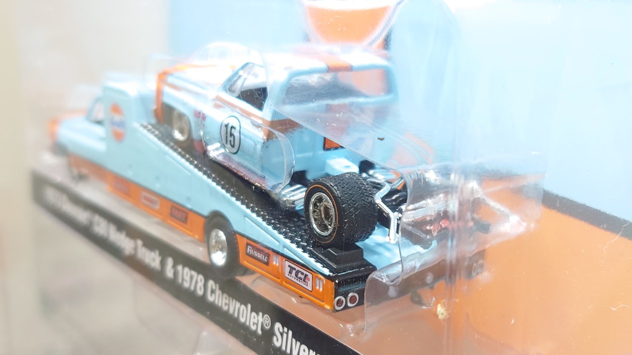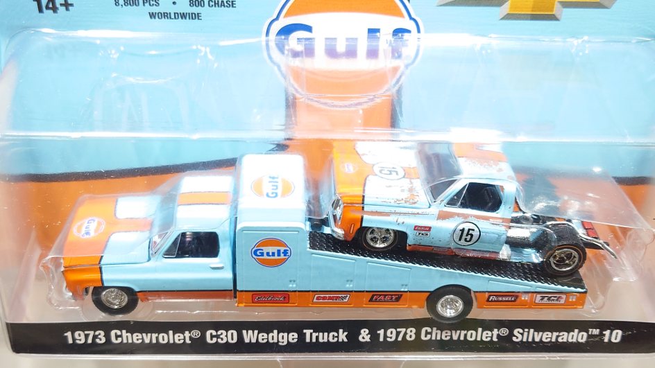M2 Machines 1/64 1973 Chevrolet C30 Wedge Truck & 1978 Silver Silverado 10 Blue/Orange Gulf [39200-MJS07]